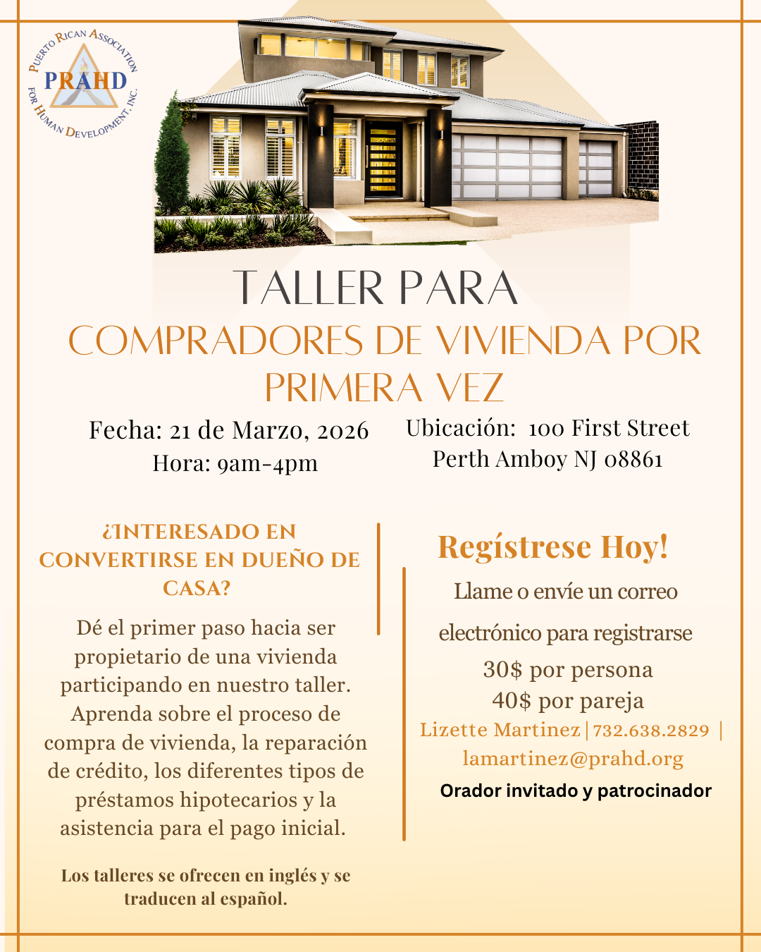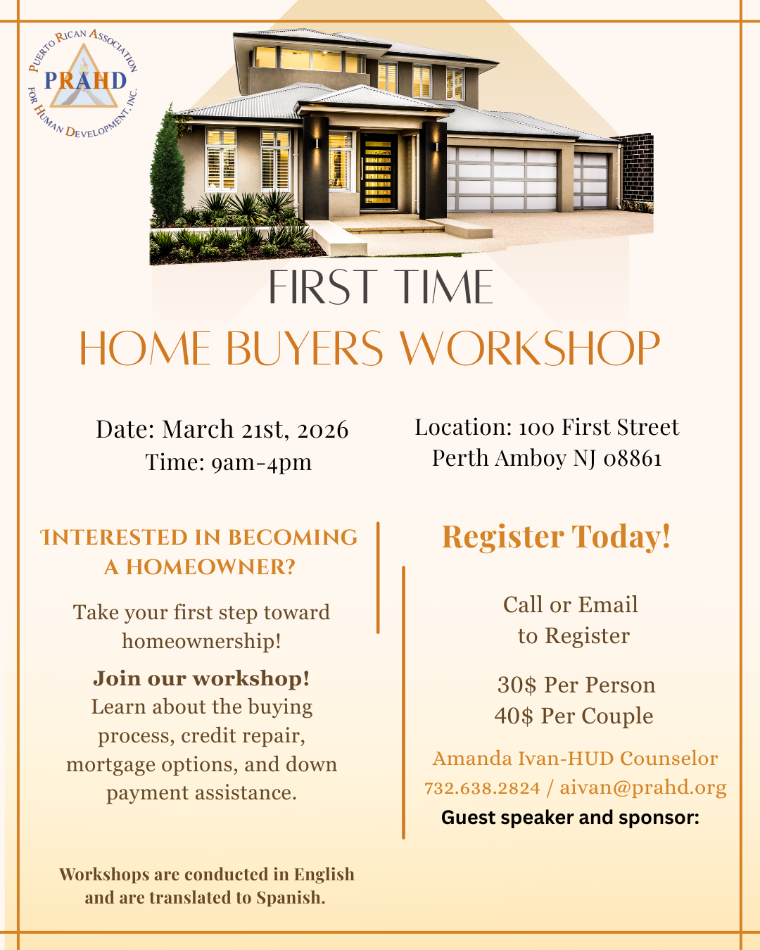 Take your first step toward homeownership! Join our workshop, and learn about the buying process, credit repair, mortgage options, and down payment assistance. Workshops are conducted in English and are translated to Spanish.
