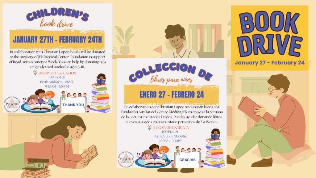 PRAHD, in collaboration with Christian Lopez, is excited to host our Children’s Book Drive! This initiative supports the Auxiliary of JFK Medical Center Foundation’s celebration of Read Across America Week, bringing books and joy to young readers.